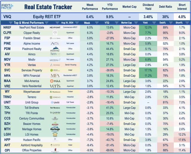Best & Worst Performance This Week Across the REIT Sector