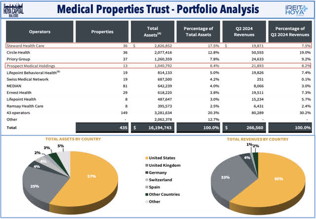 Healthcare: Sticking in the healthcare space, embattled hospital owner Medical Properties Trust (MPW) was little-changed this week despite signs of potential progress in resolving the ongoing messy saga related to the bankruptcy of its largest tenant, Steward Health Care. On Friday evening, Steward announced that it reached an deal to settle disputes over leasing claims by allowing MPW to take control of Steward's hospitals to allow for the transfer of hospitals to new interim operators. In exchange, MPW agreed to the release of all claims on secured lease obligations between them, "including the release of billions of dollars of claims held by MPW against Steward." Steward noted that it would seek bankruptcy court approval for the deal "as soon as possible." Earlier in the week, Steward announced an agreement to sell six of its hospitals in Massachusetts, which were among the eight Steward-operated hospitals that were owned by MPW. Earlier this month, MPW recognized a "full impairment" of its $550M equity ownership in the eight Steward-operated hospitals in Massachusetts after failed negotiations with state regulators, which MPW says would only agree to approve the transfer of the operating license - and by extension the real property - to an "in-state, not-for-profit operator." Using this leverage, Steward has been able to effectively take ownership of these properties from MPW, and it's unclear what recovery - if any - MPW would receive from the sale of these properties.
