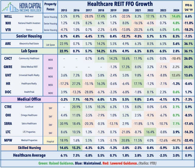 Healthcare: Skilled nursing facility REIT CareTrust (CTRE) gained 2% this week after it announced a pair of acquisitions and indicated that it plans to remain aggressive on the M&A front with a "replenished" pipeline of forthcoming deals. CTRE announced that it acquired two nursing facilities in separate transactions for a total investment of $62.1M, which include a 125-bed facility in the Mid-Atlantic and a 134-bed facility located on the West Coast. Among the most aggressive REITs relative to its size CTRE has already acquired $827in assets this year at an average yield of 9.5%. CTRE noted that it has "replenished" its pipeline with $230M of "near-term actionable real estate acquisition opportunities, not including larger portfolio opportunities the company is reviewing." While senior housing and skilled nursing REITs have been in "buy mode" for much of the year, other healthcare REITs in the medical office building ("MOB") and hospital space have remained net sellers. MOB owner Healthcare Realty (HR) gained 1% this week after it announced it further expanded its existing joint venture with KKR & Co (KKR) by contributing another $118M of assets into the JV, generating $94M in proceeds. HR initially formed the JV in May, announcing that it would sell 80% interest in a dozen medical office buildings for $383M in proceeds, and announced that it would increase this total to $500M "in the near term." HR noted that it has additional asset sales and JV transactions under contract that are expected to increase proceeds to over $1 billion, with proceeds "expected to fund accretive, leverage neutral share repurchases."
