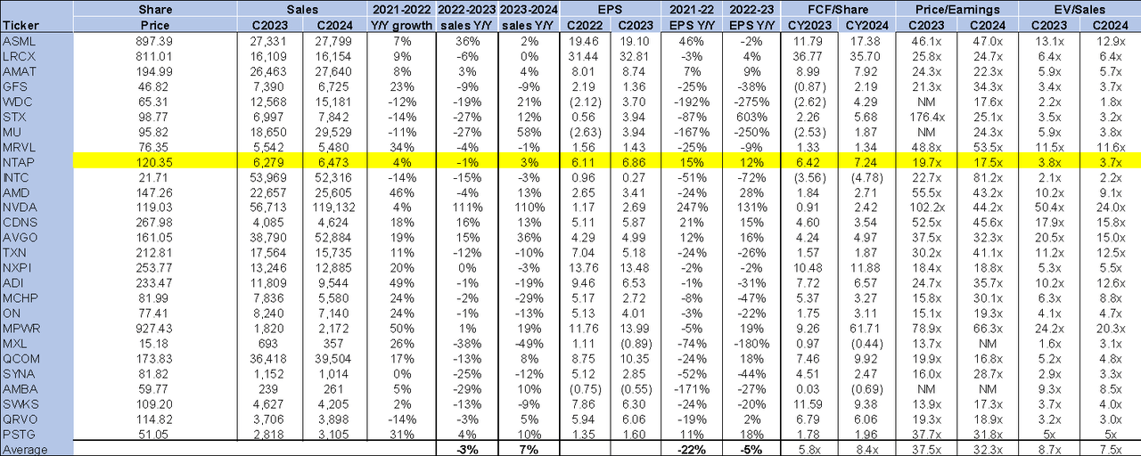 The following chart outlines NTAP's valuation against the peer group average.