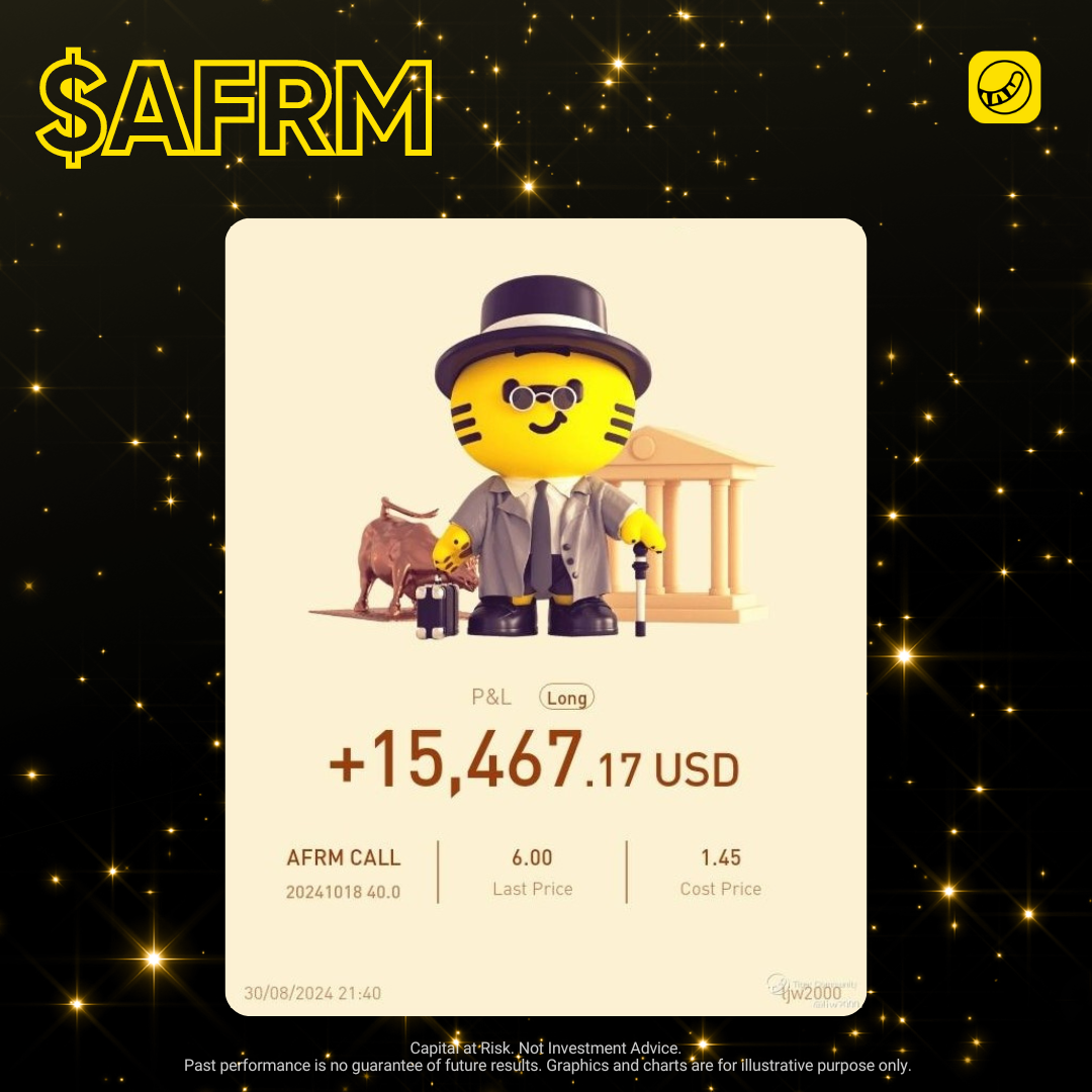 👏👏👏 Congratulations to @ljw2000 for $15467 scoring a $15,467 return by buying AFRM calls!