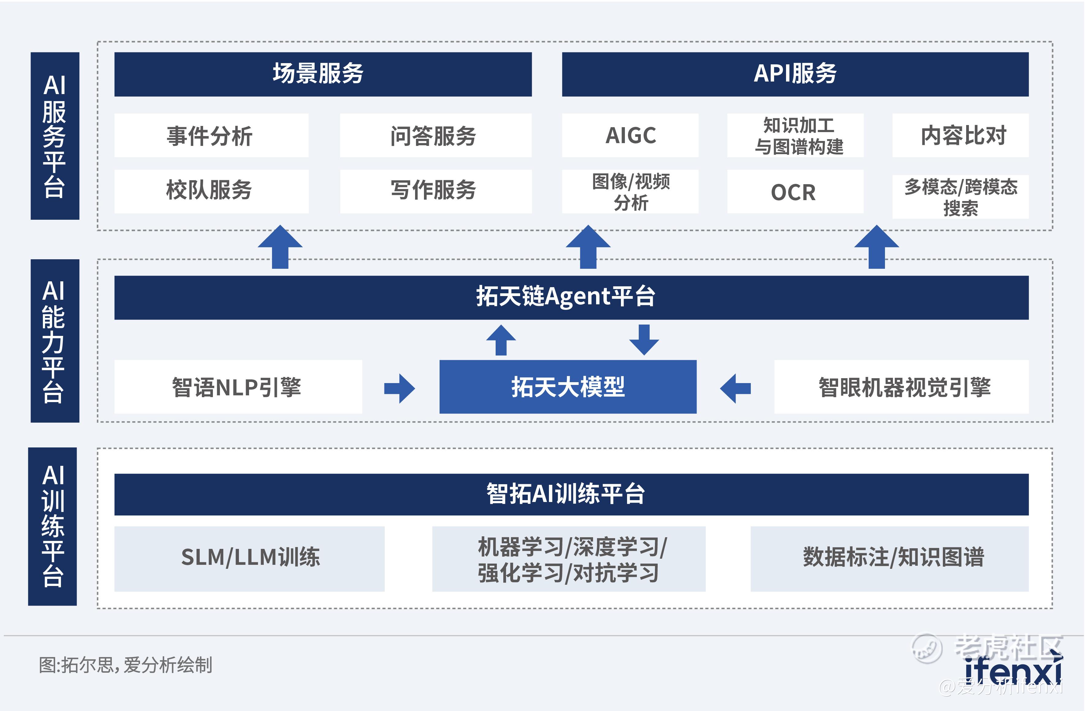 拓天鏈與拓爾思生態打通,提供端到端AI解決方案。拓爾思基於其大模型技術,以拓天鏈爲核心,構建了一個全面的AI智能平臺解決方案。該方案由三個關鍵部分組成,共同爲企業落地AI Agent提供了從底層技術到應用層服務的端到端支持。
