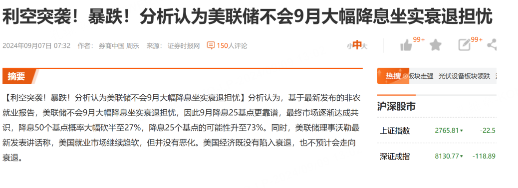 Entering September, The current market has been Shouting that it is worried about the economic recession. This worry has actually been said for two years, but it has only recently been taken seriously by the market as a reason for the decline.