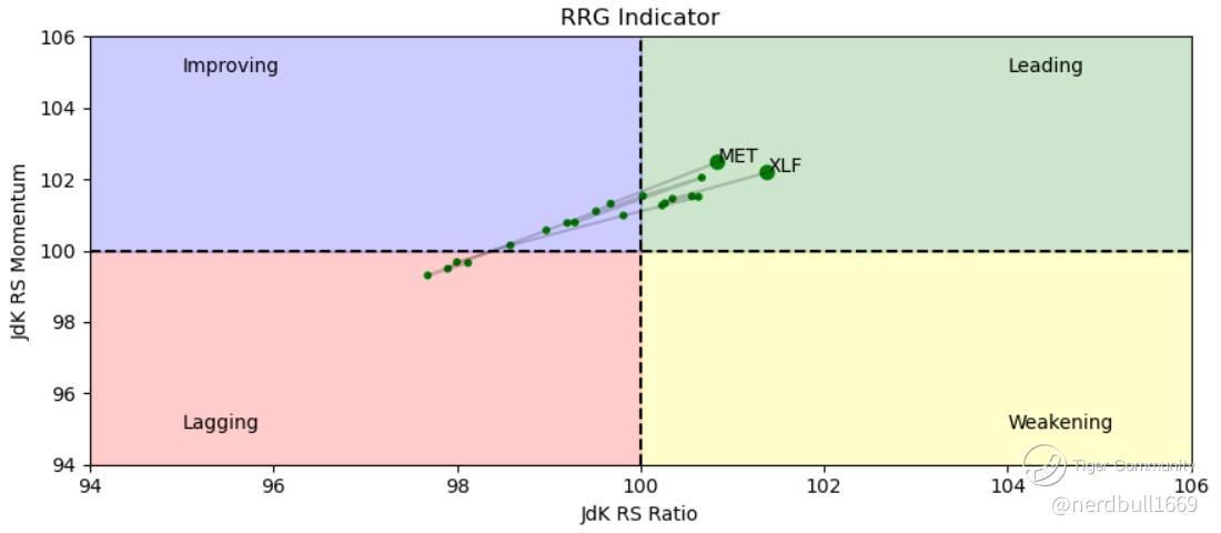 MET has moved from lagging to improving suggests that a security is beginning to reverse its underperformance before moving into the leading quadrant.