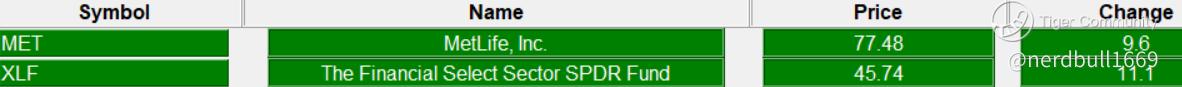 In this article I would like to share one of the XLF stock which is $MetLife(MET)$ . I will be sharing how MET has performed with XLF against the benchmark S&P 500.
