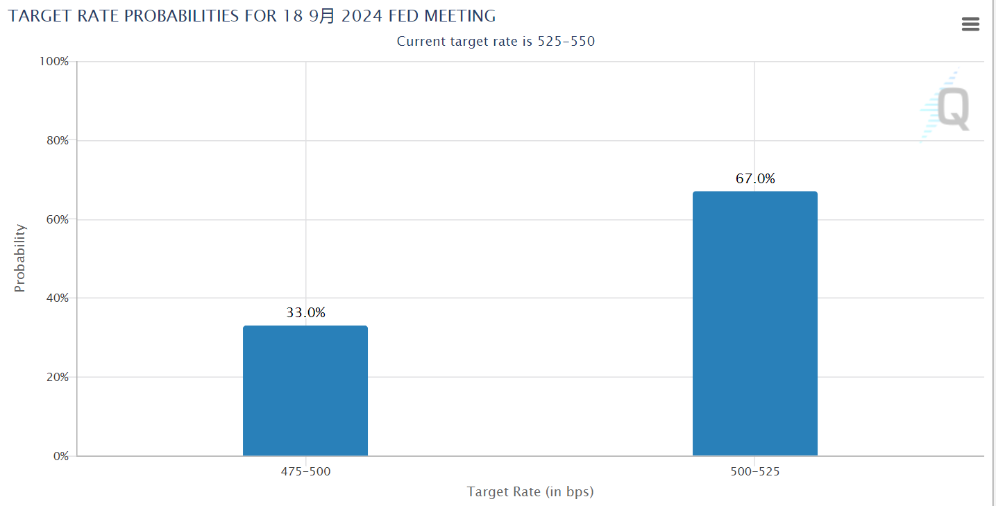 The probability of a 25 basis point rate cut in September is 73%, which is higher than the 27% probability of a direct rate cut of 50 basis points;