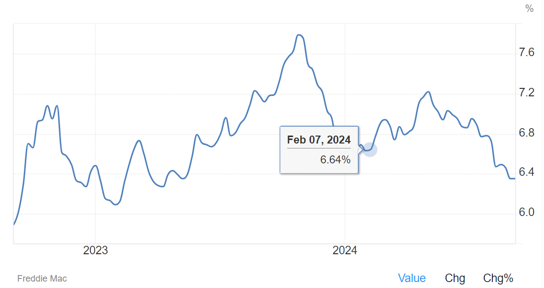 This is evidenced by the fact that as the 10-year U.S. bond rate has declined, the 30-year mortgage rate has fallen to 6.4%, which is below the average rental return of 7%.