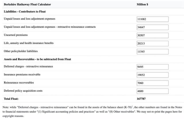 This dollar difference has grown prodigiously over time. Per the 2023 annual report, insurance float increased from $164,109 million in 2022 to $168,895 million in 2023. A March 2024 article talks about how one can get the 2023 figure from the 10-K. The total is different by $1.1 billion, which is a relatively small percentage: