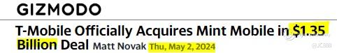 Earlier in May, 02 May 2024 to be exact, it bought budget wireless provider Mint Mobile, where Hollywood actor - Ryan Reynold was a major shareholder. (see above)
