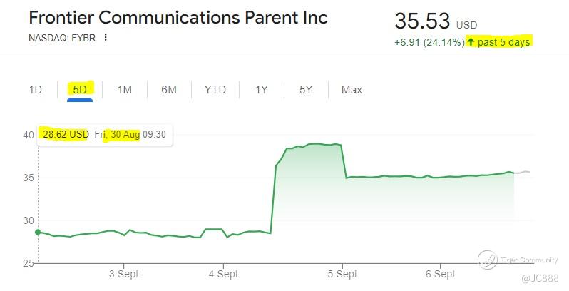 Frontier Comms has gained +24.14% for week ending 6 Sep 2024. (see below)