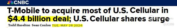 On 28 May 2024, it announced plans to buy most of US Cellular’s wireless operations & some of its spectrum assets, with a purchase price of $4.4 billion, including cash and debt. (see above)