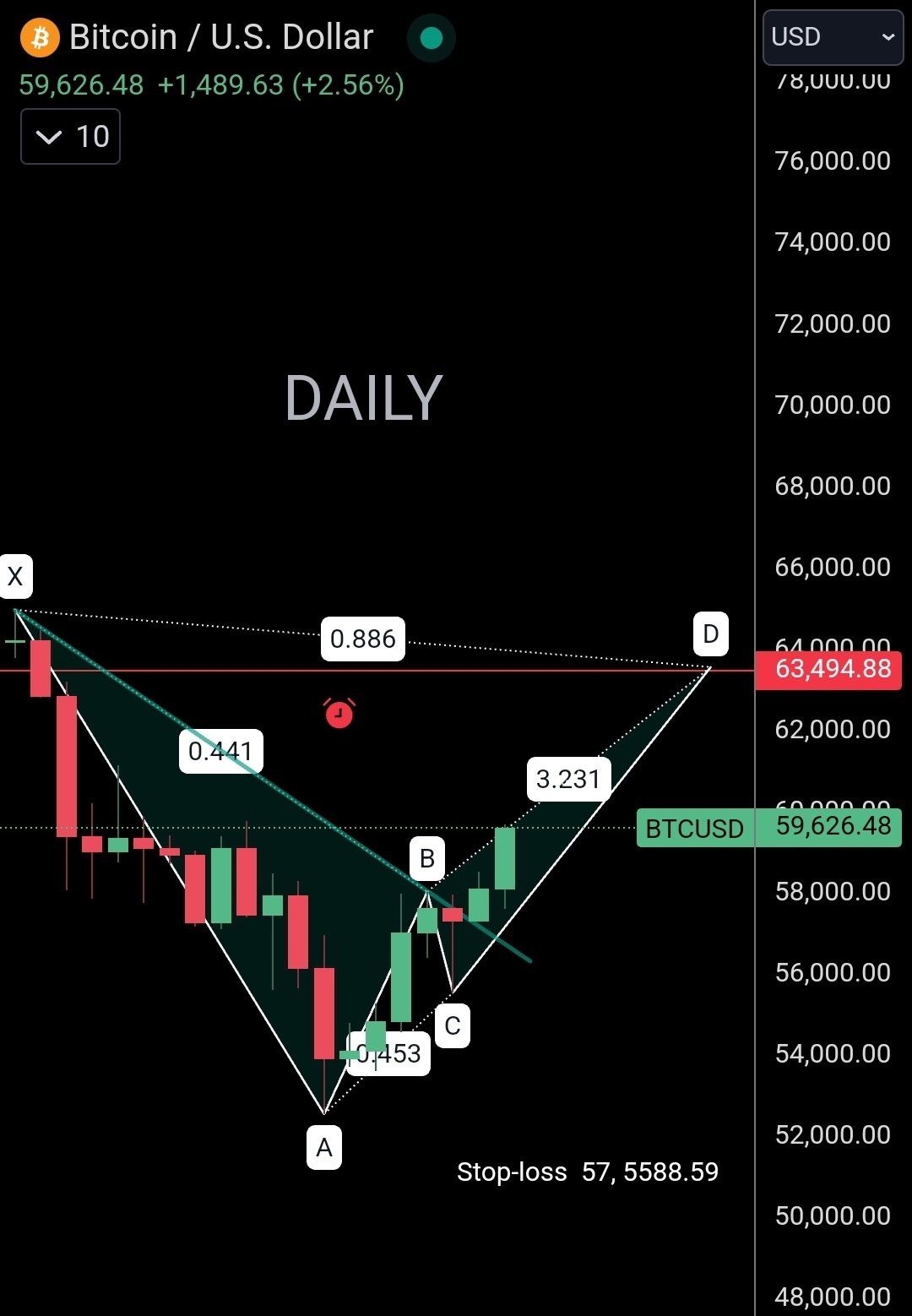 $Bitcoin(BTC.USD.CC)$ Potential bat pattern developing. BTC. Projected price target 63,494.