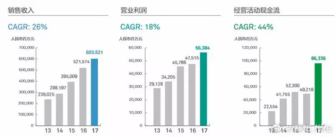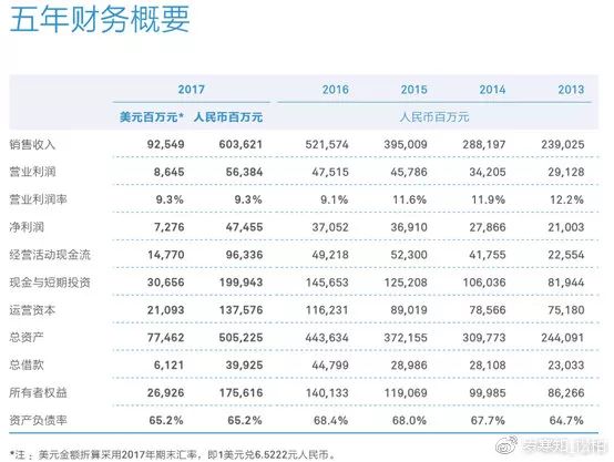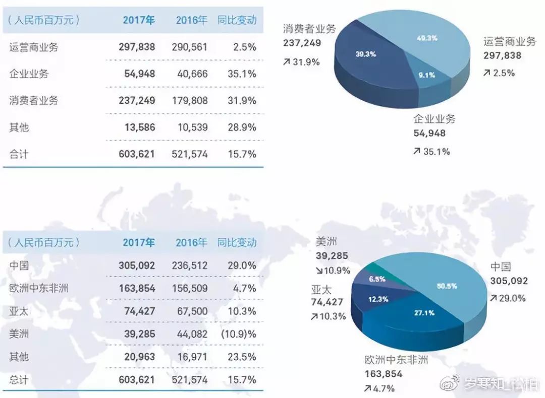 以下是華爲2017年度的財報摘要和分析,以及與同行及其它龍頭企業的對比。