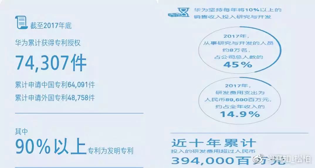 上圖爲過去4年的研發投入數據,從2013年的280億元增長220%到2017年的897億元,研發費用已經達到收入的14.9%,年化複合增長率高達34%,今年研發總投入超過1000億將毫無懸念,這個數據是非常驚人的。