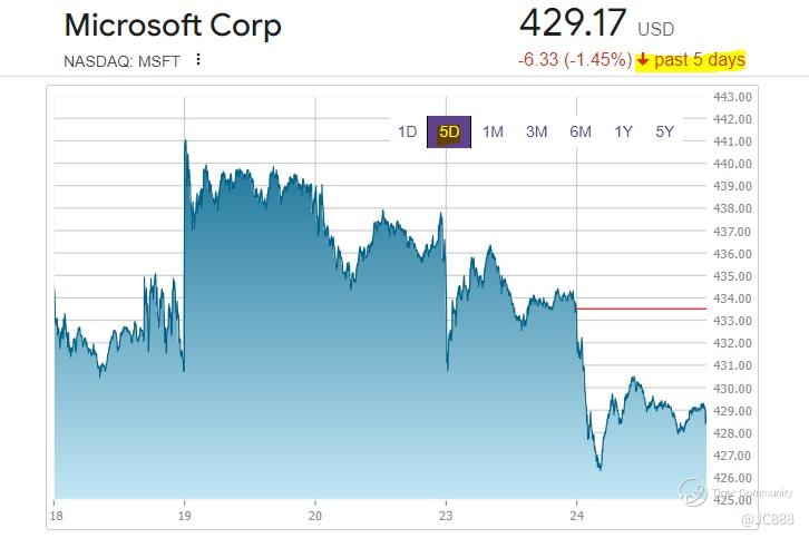 Incidentally, MSFT stock price has been on the dip, for the past 5 days. (see above)