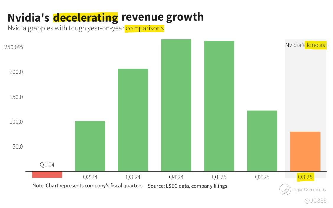 In the last 3 consecutive quarters (Q3 2024, Q1 2025 & Q2 2025), Nvidia recorded revenue growth of > +200%.