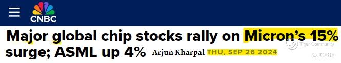 With $Micron Technology(MU)$ reported stellar quarter earnings on Wed, 25 Sep 2024 that exceeded Wall Street analysts’ estimates, this bodes well for Nvidia in return.
