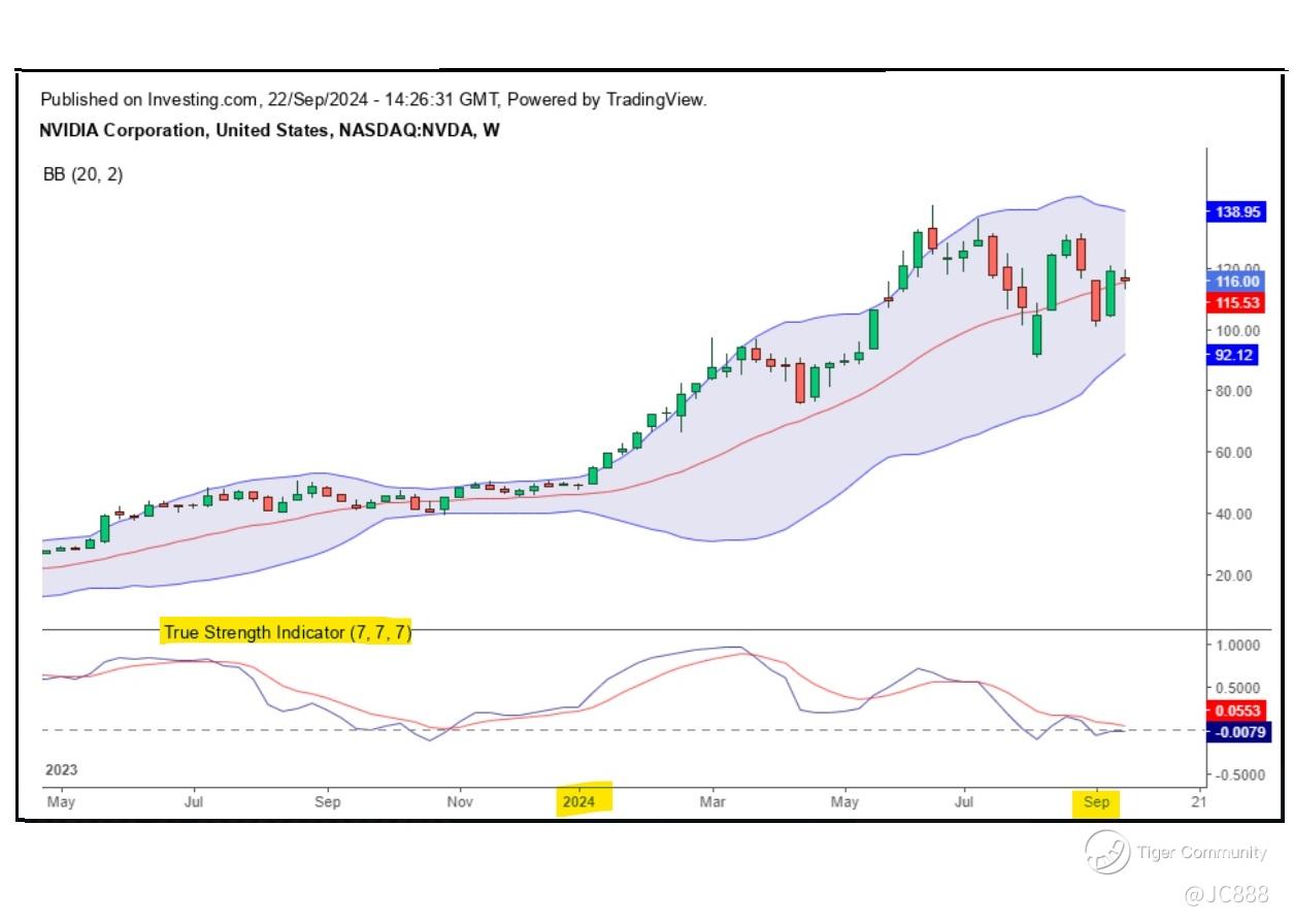 Currently, Nvidia is trading within the upper band of the Bollinger Bands (BB), suggesting some near-term support and resistance levels for traders to watch.