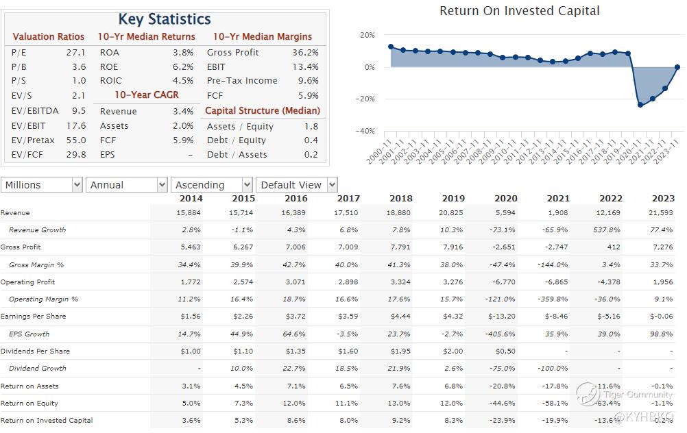 However the operating profit remains of concern despite recovery from COVID years to a operating profit of $1.9 billion in 2023.