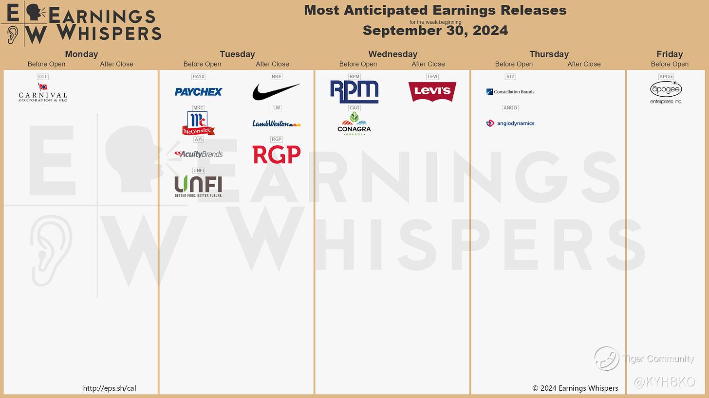 Q4/2024 has started. Nike, ConAgra, Cal-Maine Foods, Carnival, Levi's, and Constellation Brands are all expected to report their earnings next week.