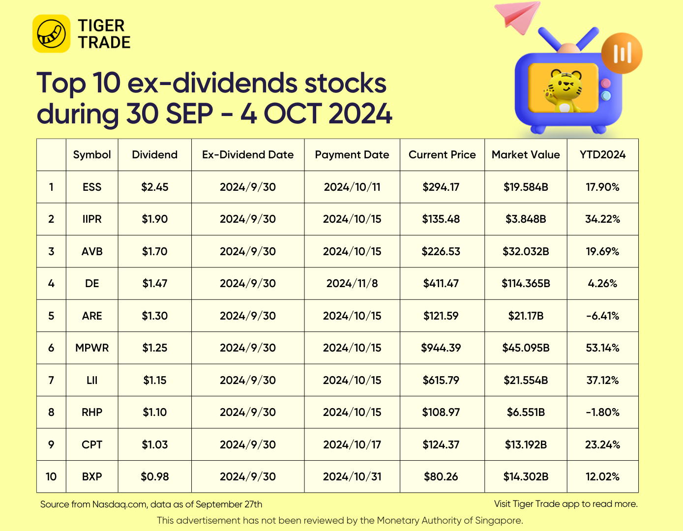 🎁Capturing Top 10 Ex_dividend: ESS, IIPR, AVB, DE, ARE...