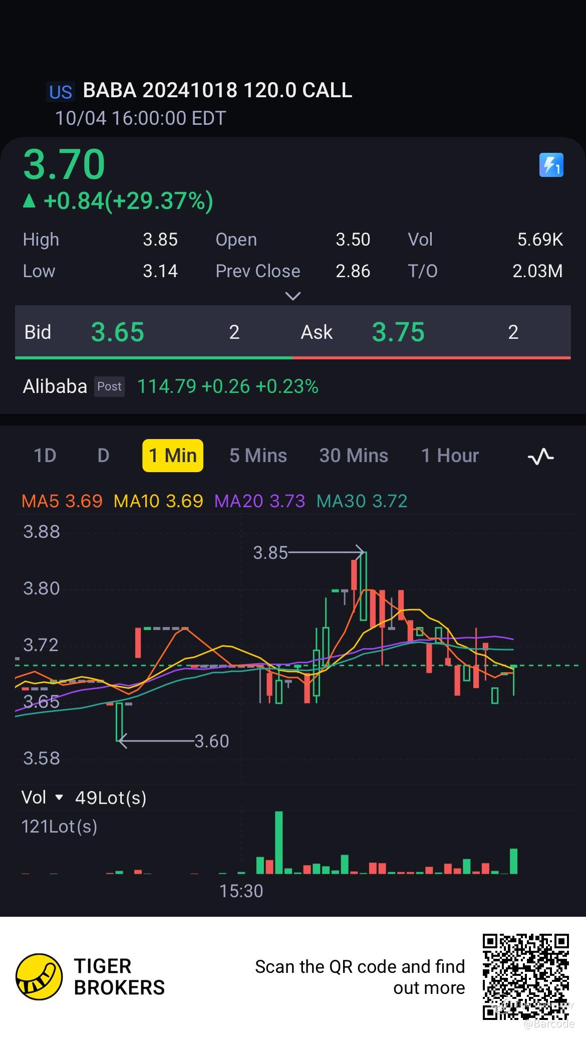 $BABA 20241018 120.0 CALL$ This 18Oct Call is locked and loaded ready for 7Oct24 Monday Open for $Alibaba(BABA)$ 🔺🅱️ullish for this BABA❣️