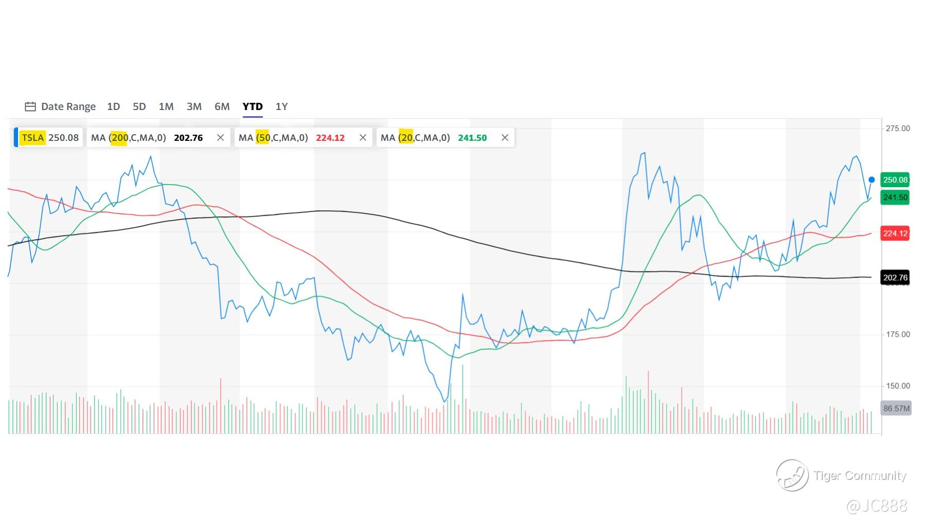 Moving Averages (ma): On Fri, 04 Oct 2024 - Tesla’s stock closed at $250.08. Its 50-day ma is a critical support level and Tesla is above it, indicating a bullish trend.