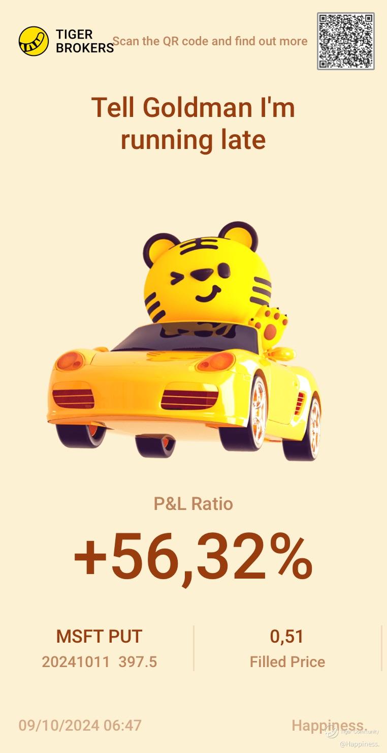 $MSFT 20241011 397.5 PUT$ Closed my trade before the flight. ✈️ in case I can't follow up and I don't want it in the money. Nice trade with 50% win after one week.