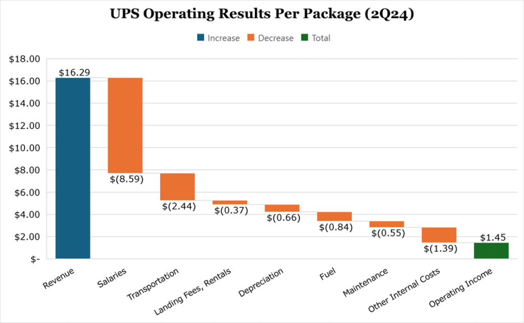 Volumes for the first half of the year ending June 2024 saw a decrease of 1.8%. UPS reported that declines were worst for B2B customers but that there was not a particular industry or customer size that made up the majority of the decline. B2C volumes were still strong, though no longer able to fully offset B2B declines.