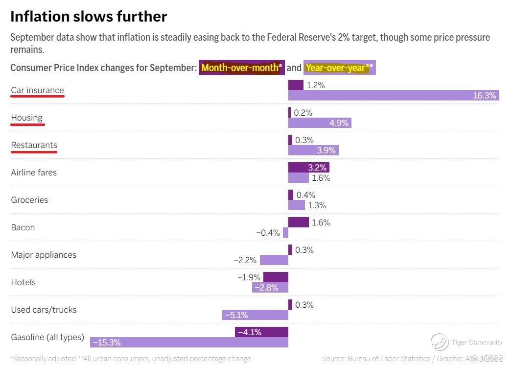 A positive note in September’s data is “apartment rental prices” grew slower, a sign that housing inflation is finally cooling, a long-awaited development that would provide relief to many consumers.