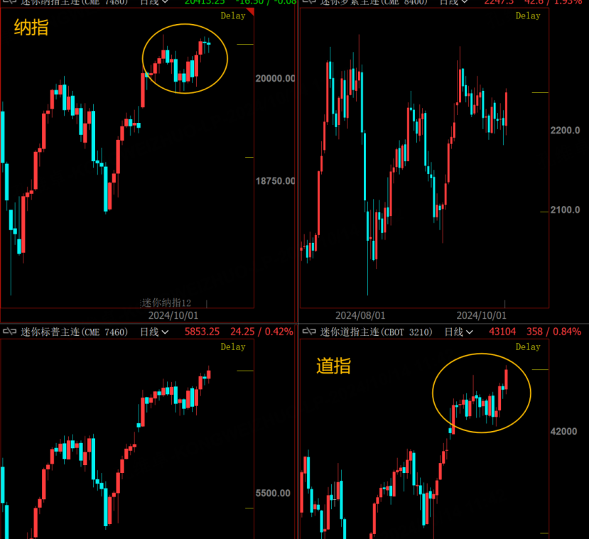 Therefore, the Nasdaq and the Dow will still alternate strength and weakness repeatedly before the polling day. The recent strength of the Dow reflects the market expectation of Trump's rising polls. If you have a tendency towards which candidate, you can simply hold an index. Anyway, the general direction has not changed much, just the difference in speed. Let's see what the final election result will be.