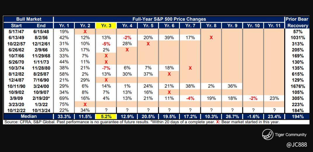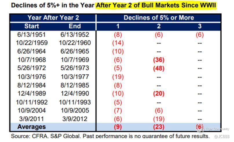 According to CFRA Research, Chief investment strategist, Sam Stovall - since 1947, all 11 bull markets that celebrated their 2nd birthday experienced at least one decline of -5% or more in the subsequent 12 months, with some even turning into new bear markets (see above)