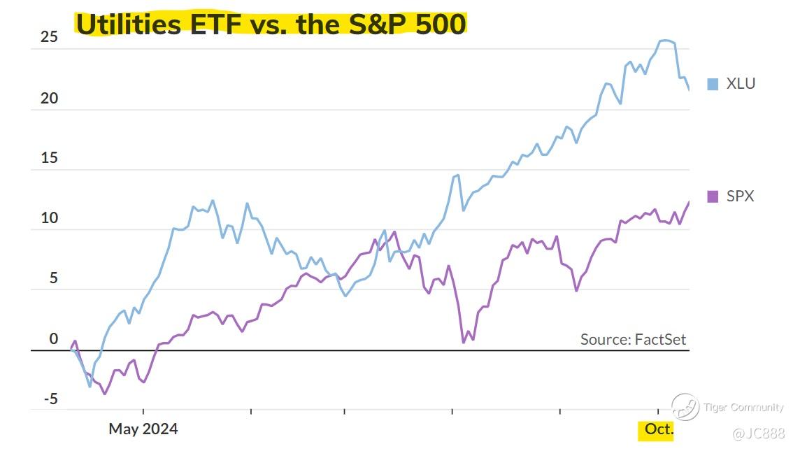According to FactSet, the $Utilities Select Sector SPDR Fund(XLU)$ dropped by about -2.5% on Wed, 09 Oct 2024.