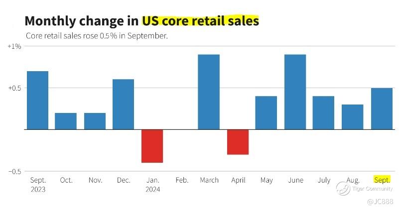 Core retail sales’ date that exclude autos, was stronger than headline sales, with numbers adjusted for seasonal factors but not inflation that rose 0.2% “monthly” as reported in the consumer price index (CPI) report published on 10 Oct 2024.