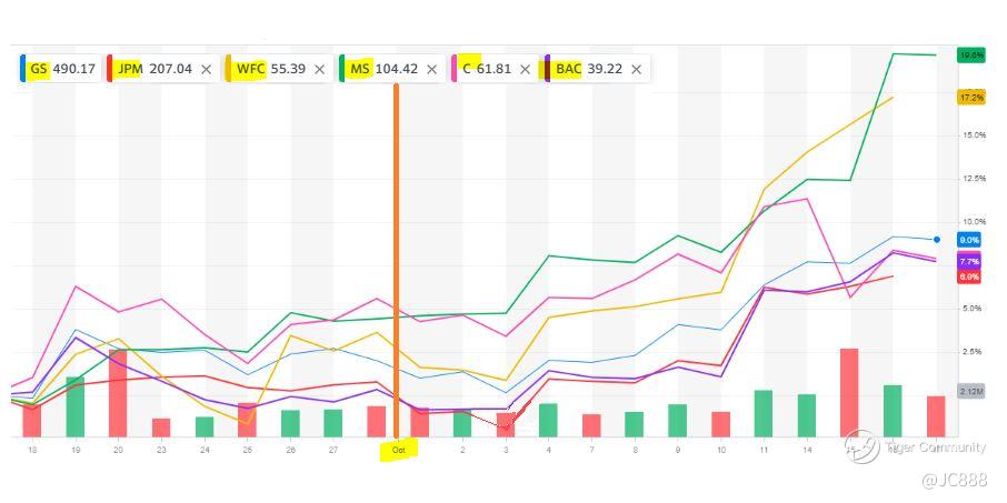 $Wells Fargo(WFC)$ is up by +7.57%.