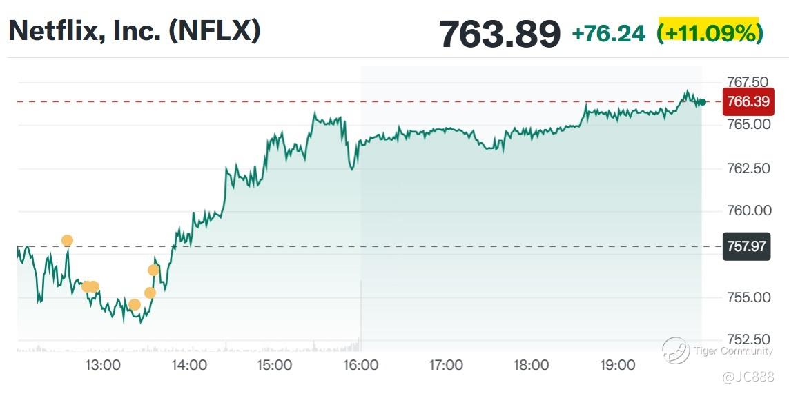 With both earnings and outlook exceeding Wall Street’s expectations, Netflix climbed +11.09% on Friday.