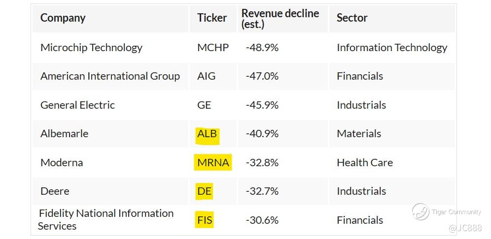 They include $Moderna, Inc.(MRNA)$ (covid-19 darling stock), $Fidelity National Information(FIS)$, , $John Deere(DE)$ and then some more.