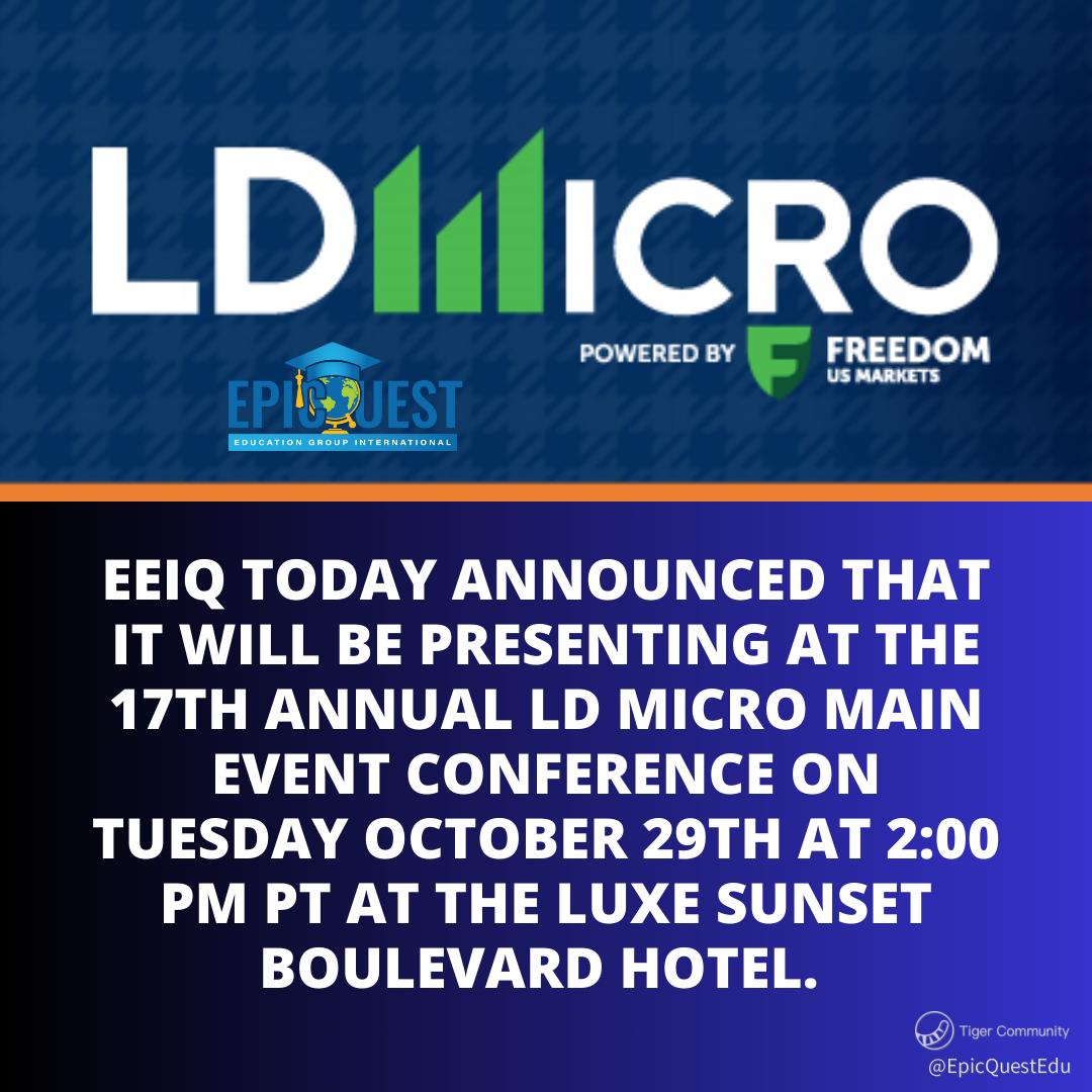 Event: LD Micro Main Event XVII Date: Tuesday, October 29th Time: 2:00 PM PT