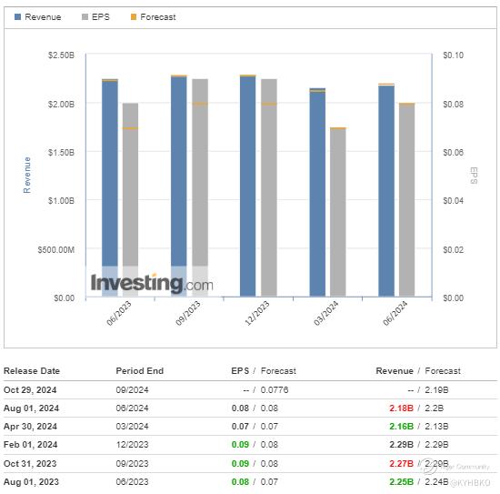 For the coming earnings, the forecast for EPS and revenue are 0.0776 and $2.19B respectively.