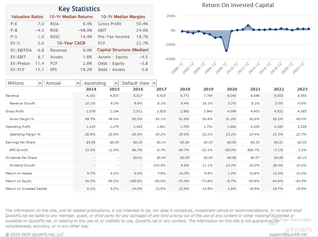 The 10-year median margins for gross profit and free cash flow (FCF) stands at 50.4% and 22.7%.