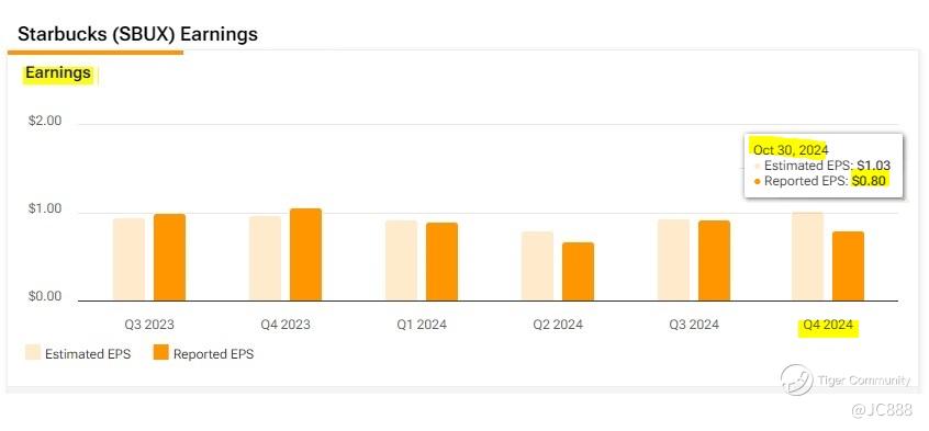 $Starbucks(SBUX)$ will officially be releasing its quarterly earnings on Wed, 30 Oct 2024, after market close.