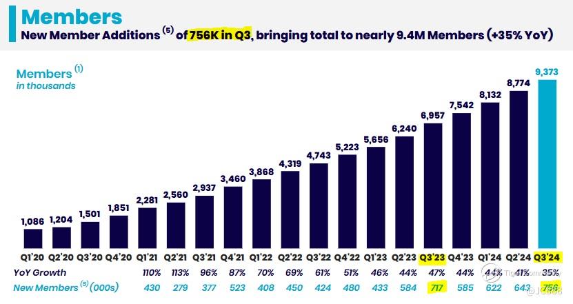 New customers: Added > 756,000 new customers and now has nearly 9.4 million customers, a +3.4% YoY growth. (see below)
