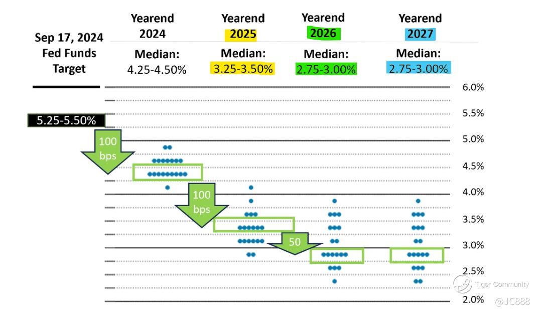 Based on the Fed’s latest September 2024 dot plot, there will be more interest cuts in the pipeline well into 2027. (see above)