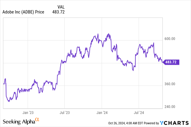 I last covered Adobe (NASDAQ:ADBE) in September 2022, two months before the launch of OpenAI's ChatGPT. I had a hold position mainly based on its $20 billion bid to acquire Figma. Eventually, the deal did not materialize, and the stock has gained 71% since then, in large part due to investor enthusiasm around GenAI.