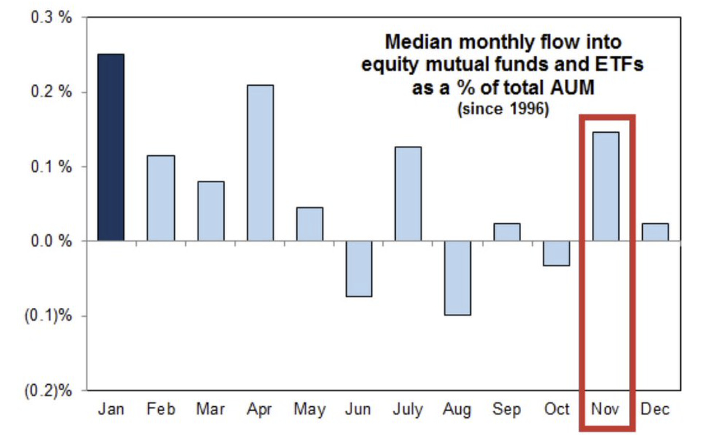 3. Fund Flow Season: Not to mention the point that November typically does see a surge in fund flows. Of course the counterpoint would be that everyone already knows this and that’s why the market has been so resilient. The other counterpoint would be that there are still some nasty geopolitical risks lurking, and a benign clear election outcome is far from guaranteed …also the data has been a little patchy on some fronts.