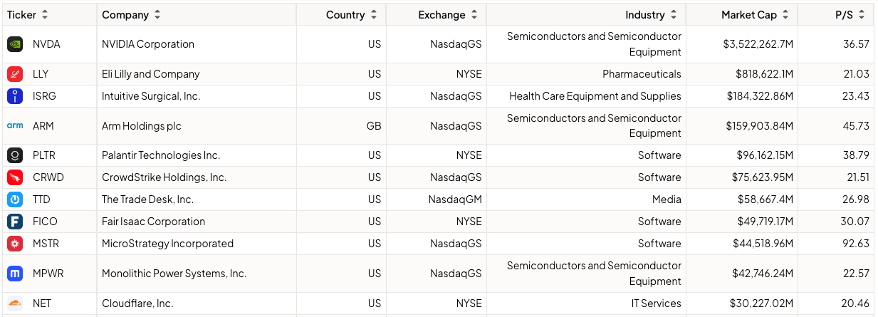 High prices indicate the market is already pricing in growth and/or margin expansion that hasn’t happened yet. What’s crazy is the market looks a lot like it did in 2021 from a valuation perspective. There are 11 companies with a market cap of over $30 billion that trade for over 20x sales!