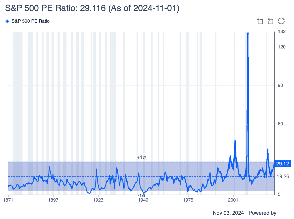 The market overall also seems extremely highly valued. You can see in the chart below the $.SPX(.SPX)$ ’s P/E ratio is 29, a level we have only seen in 2001, 2009, and 2020 — all recessions when the “E” in P/E declined. Now, we just have a high “P”.