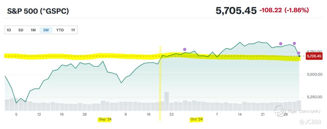 Big Tech tumble on the last day of October wiped out the S&P 500’s gain for October month. (see below)