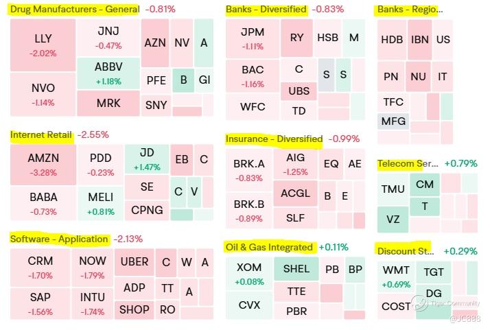 A quick glance at the Heatmap of US stocks sorted by Sectors revealed: