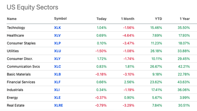 It would ideally be a time to get braver and look beyond traditional defensives now that there's much improvement in the macro data. Except that there are still risks of a growth softening in the US going forward and global factors, like weak Chinese growth, can impact the outcomes for cyclicals like commodities and consumer discretionary goods, which have seen relatively muted increases year-to-date (YTD) anyway (see table below).